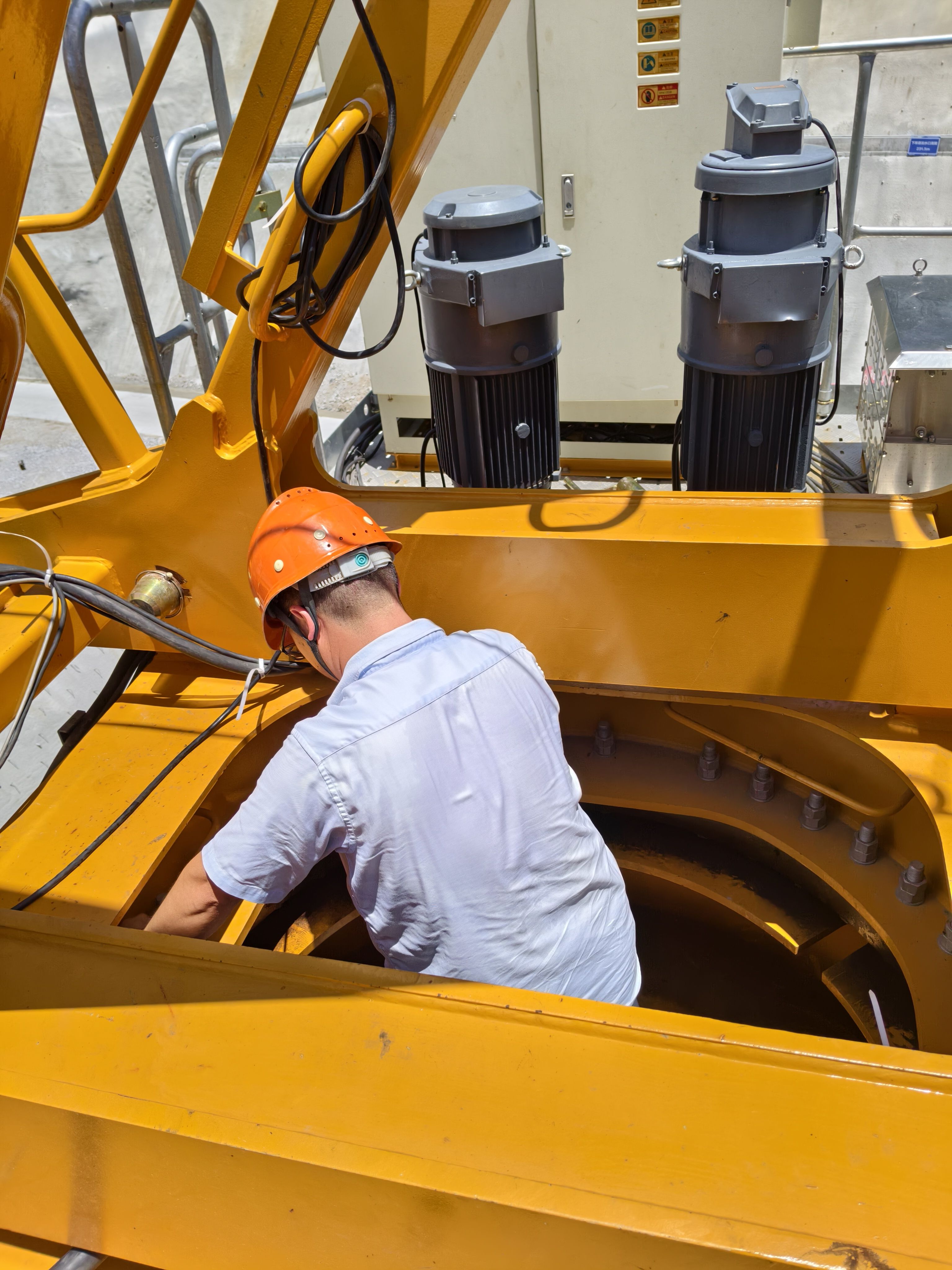 此次检验的 3# 塔式起重机(型号 XGT7020-10S1)位于主涵洞进出水口,承担着吊装钢模板、钢筋等重要起重作业。设备独立最大高度60米、最大起重量10吨、平衡重最大工作幅度70米,其安全运行直接关系工程进度与施工安全。